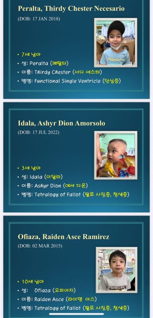 3명의 중증선천성심장병 환아들을 한국으로 이송하여 이화여대 의과대학 부속 서울병원에서 서동만 교수팀이 수술하였음